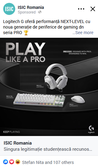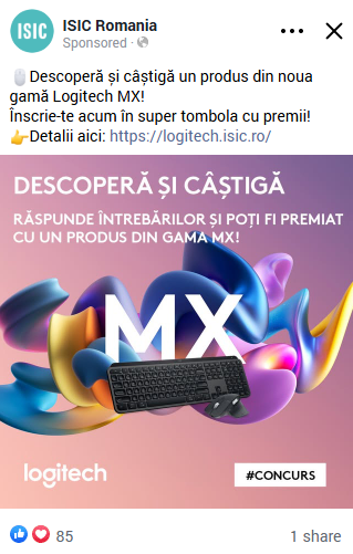 Am completat activările offline cu campanii online care au menținut atenția și interesul comunității. Prin concursuri digitale și mecanici gândite special pentru studenți, Logitech a reușit să genereze engagement autentic și conversații relevante.